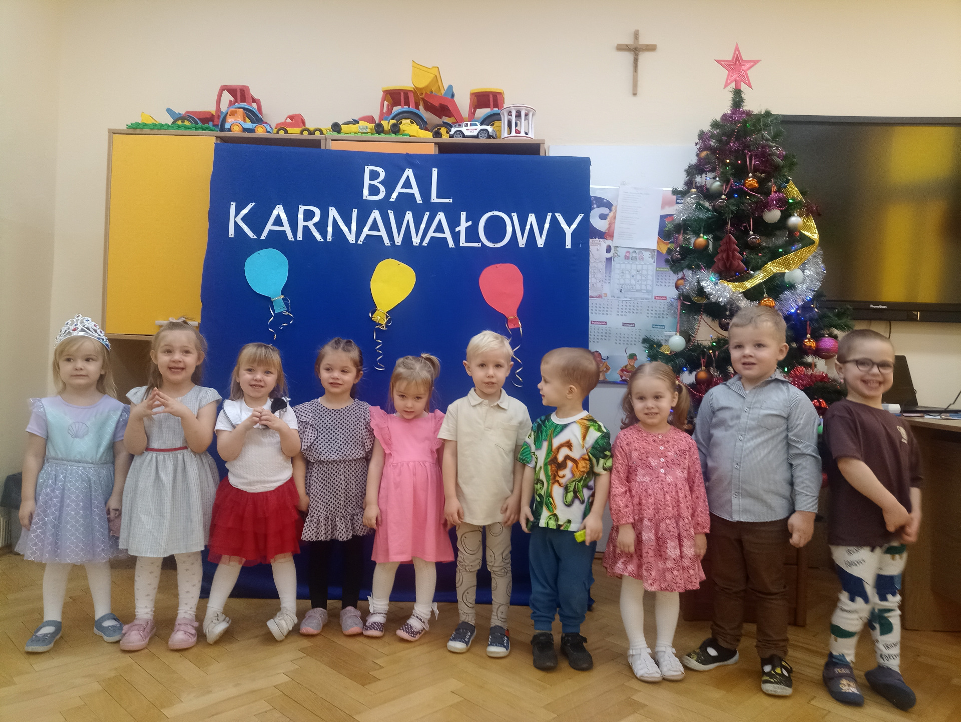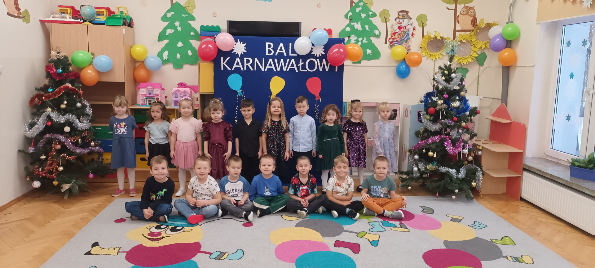W tych dnia już od rana w przedszkolu pojawiały się dzieci pięknie ubrane. Niektóre przedszkolaki przebrane były za bohaterów z różnych bajek, filmów oraz za służby mundurowe. Wystrój sal wprowadził w radosny nastrój oraz zachęcał wszystkich do wesołej zabawy. Kiedy pojawiły się pierwsze rytmy wesołej muzyki wszyscy z wielką ochotą rozpoczęli pląsy i tańce. Przedszkolacy bawili się znakomicie. Jednym słowem zabawa na 102! Uśmiech nie znikał z twarzy mimo chwilowego zmęczenia.