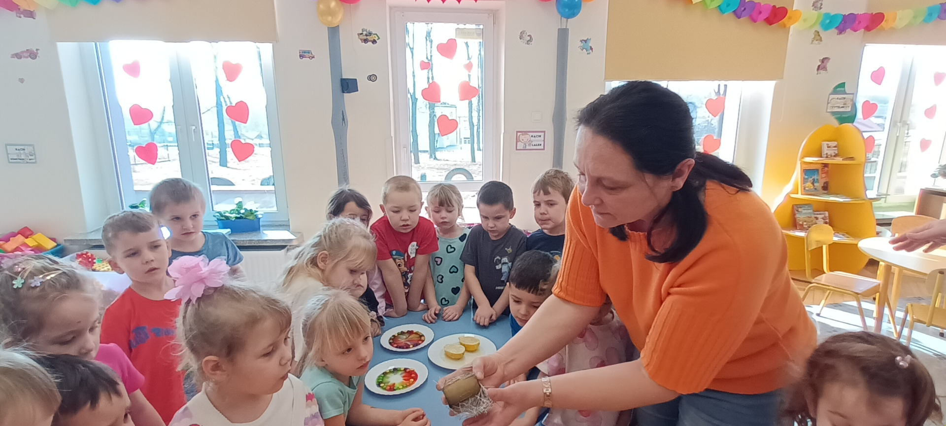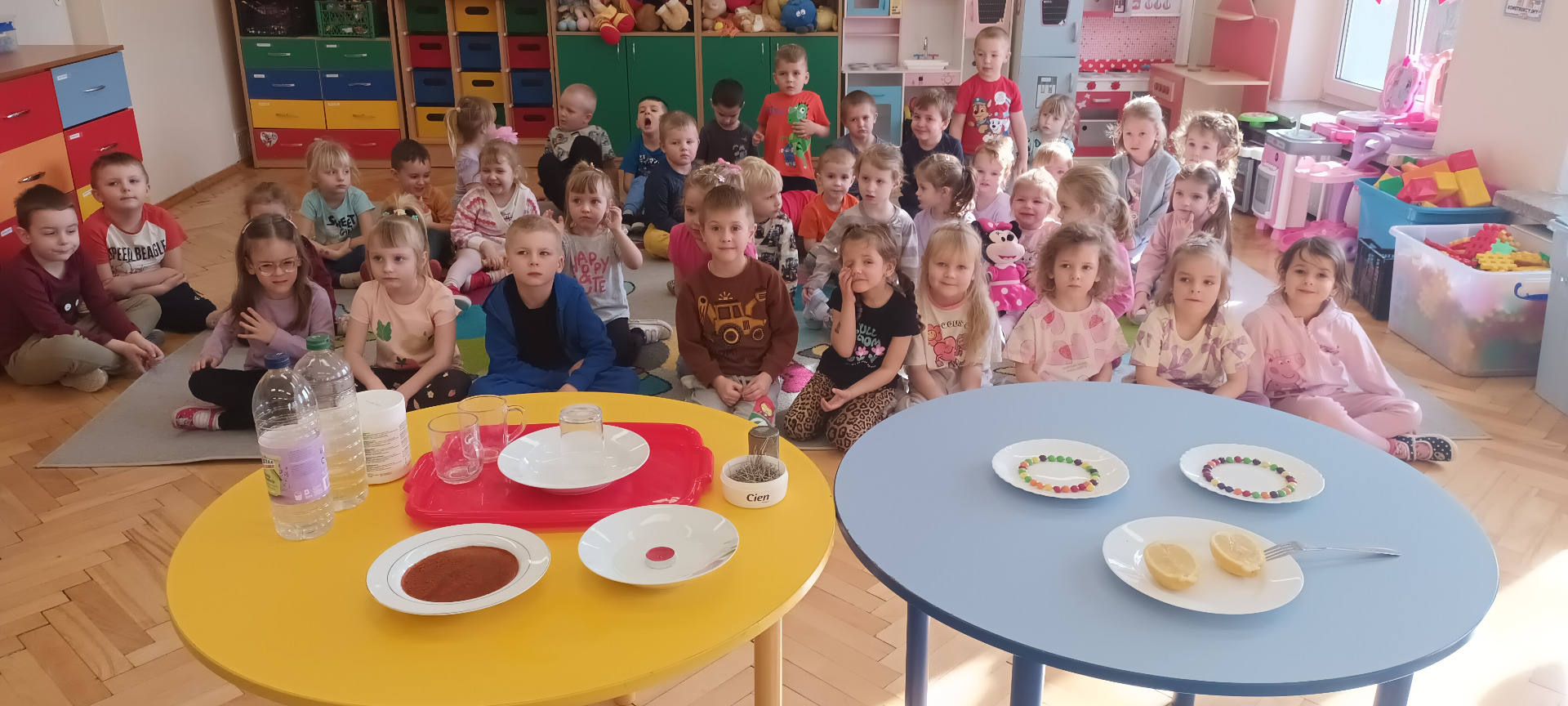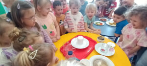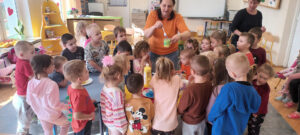 Przedszkolaki bacznie obserwowały doświadczenia, które zostały przygotowane przez wychowawczynie poszczególnych grup. Wykonywane eksperymenty zachęcały do myślenia, porównywania, opowiadania. Z wykonanych eksperymentów dzieci czerpały wiele radości, była to wspaniała zabawa dla nich.