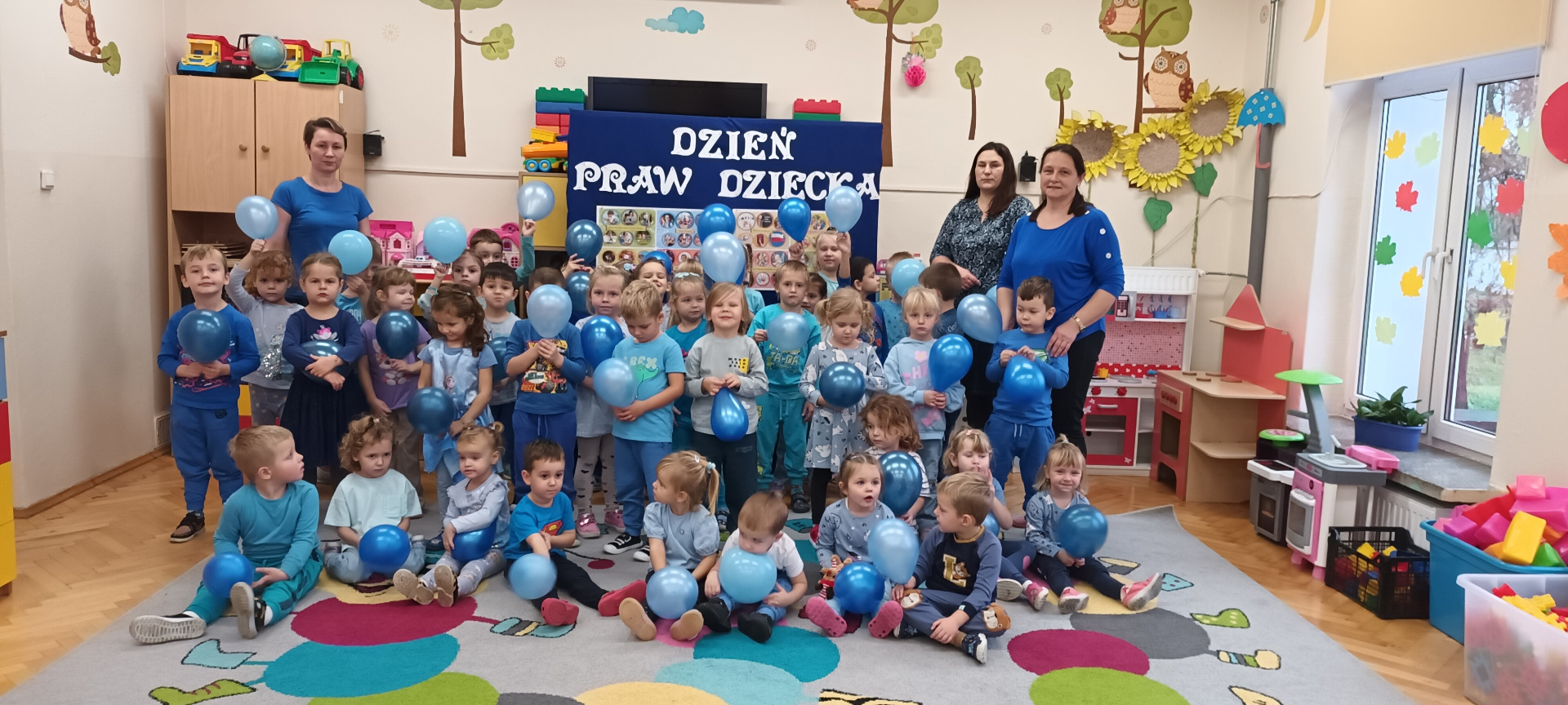 Przedszkolaki w tym dniu przyszły ubrane na niebiesko, jako symbol solidarności ze wszystkimi dziećmi na świecie, również z tymi, których prawa nie są przestrzegane. We wszystkich grupach przedszkolnych zostały przeprowadzone zajęcia z wykorzystaniem ciekawych materiałów edukacyjnych oraz odbyły się rozmowy związane z omawianą tematyką. Została wyświetlona także prezentacja pt.„Prawa i obowiązki dzieci”. Nadrzędnymi prawami, które dzieci poznały w tym dniu to prawo do zabawy, miłości, szacunku oraz zdobywania wiedzy.
