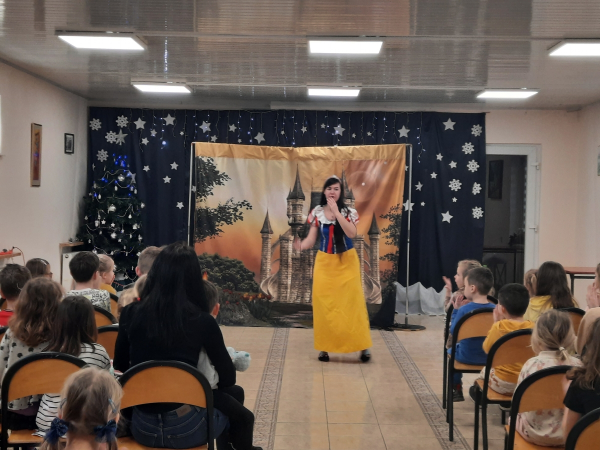 W Naszej Bibliotece podczas ferii odbyło się niezwykłe wydarzenie, które zachwyciło wszystkich uczestników – przedstawienie teatralne dla dzieci pt. "Królewna Śnieżka i Siedmiu Krasnoludków". Widzowie, w tym młodsze i starsze pociechy, miały okazję przenieść się do bajkowego świata pełnego magii, dobroci i niebezpieczeństw, w którym dobro zawsze zwycięża. Dzięki żywym kolorom kostiumów, prostym, ale efektownym dekoracjom, dzieci mogły poczuć się jak w prawdziwej bajce.
