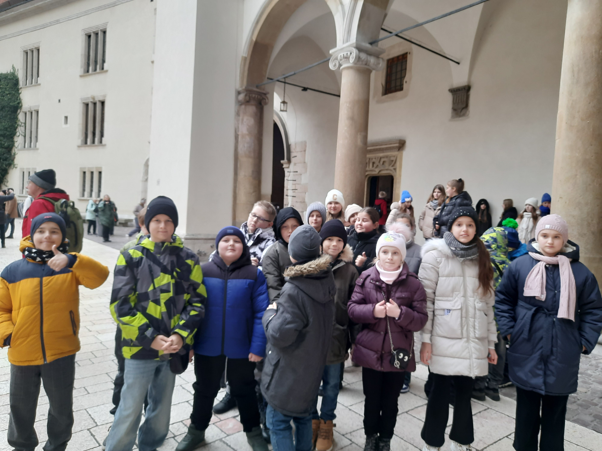 Ostatnim celem wycieczki była wizyta na Jarmarku Bożonarodzeniowym, gdzie dzieci obejrzały szopki krakowskie oraz piękne dekoracje świąteczne .