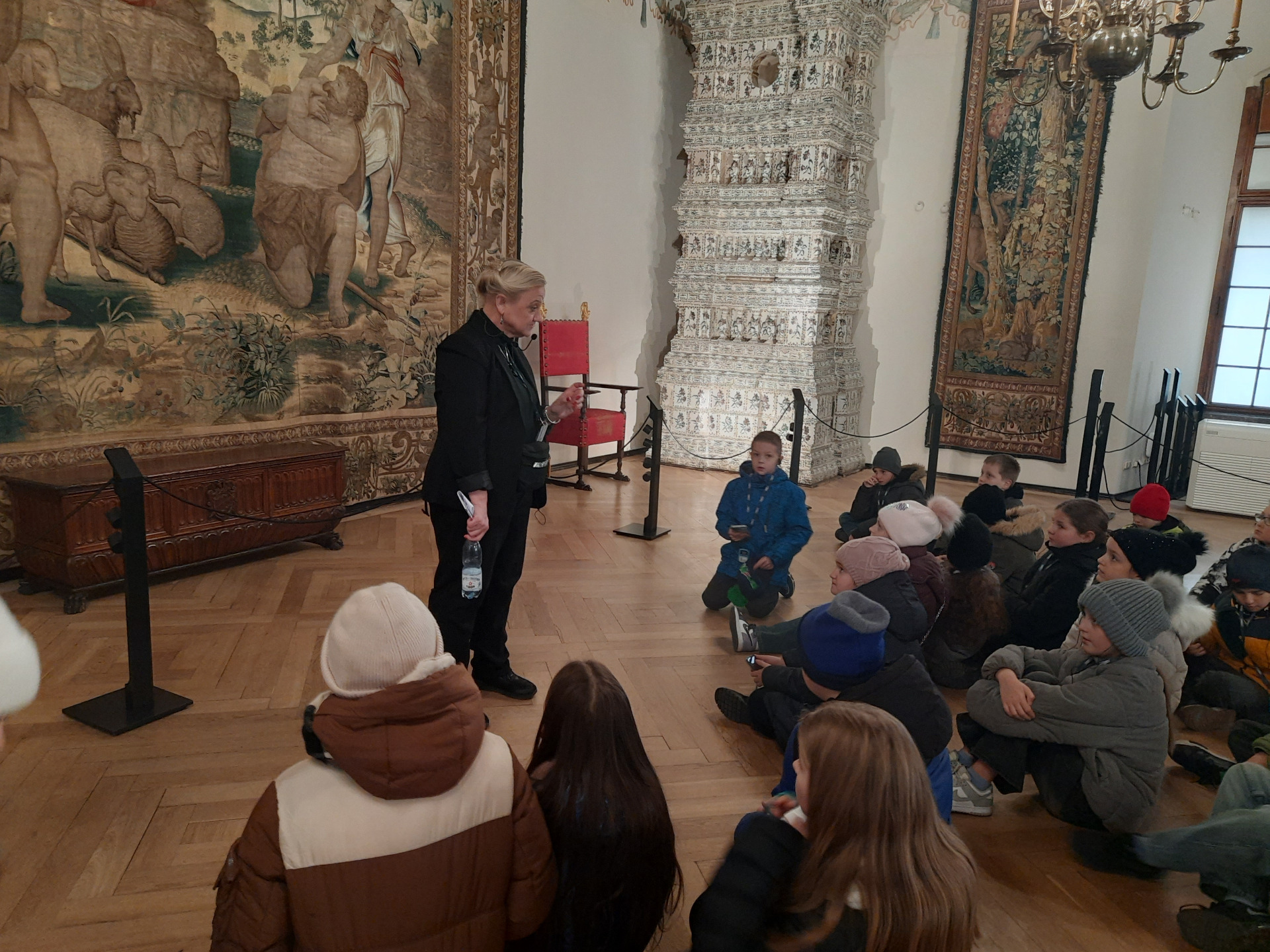 Uczniowie mieli okazję podziwiać najcenniejsze elementy ekspozycji renesansowych komnat z zachowaniem ich pierwotnego wystroju. Najwięcej emocji wzbudziła jednak możliwość przymierzenia korony królewskiej.