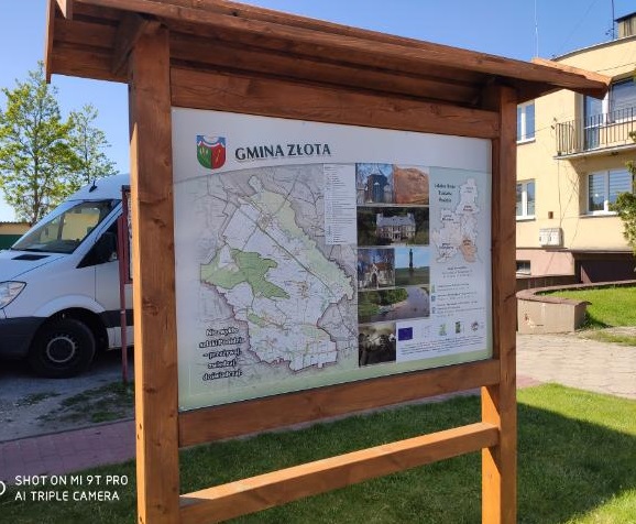 Tablice w naszej gminie zostały ustawione m.in. przed budynkiem Urzędu Gminy Złota oraz na przystani kajakowej w Chrobrzu.