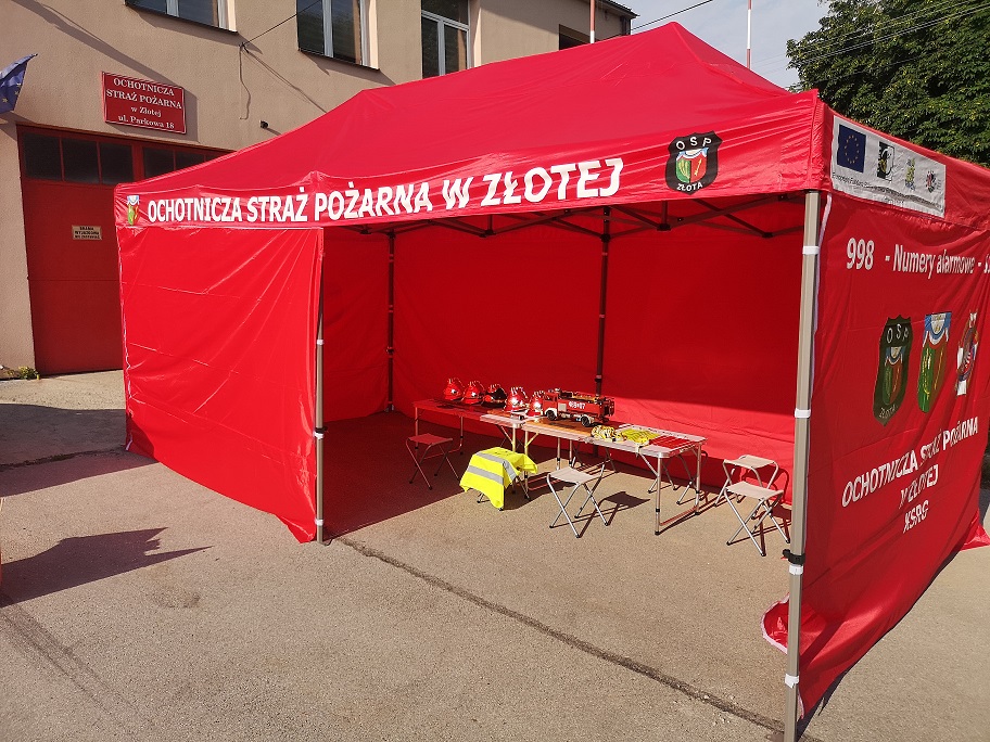 Druhowie z Ochotniczej Straży Pożarnej w Złotej zakończyli realizację operacji pt. ”Promocja gminy Złota poprzez zakup gadżetów promocyjnych”. Wartość zrealizowanego projektu grantowego powierzonego przez „LGD Ponidzie” to kwota 11 115,00 zł. W ramach realizacji grantu zakupiono m. in. elementy strażackiego stroju paradnego ( hełmy ozdobne i halabardy), kamizelki odblaskowe, breloczki, smycze i opaski odblaskowe z logo jednostki, 2 zestawy turystyczne (stoliki składane wraz z krzesełkami), replikę samochodu strażackiego „Jelcz” oraz namiot reklamowy ekspresowy również z logo OSP Złota.