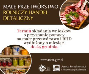 Czytaj więcejTermin składania wniosków o przyznanie pomocy na małe przetwórstwo i RHD wydłużony o miesiąc. Termin przyjmowania wniosków o przyznane pomocy na "Wsparcie inwestycji w przetwarzanie produktów rolnych, obrót nimi lub ich rozwój" został wydłużony do 24 […]