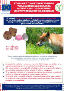 Czytaj więcejJesiennej i dodatkowa akcja ochronnych szczepień lisów przeciwko wściekliźnie na terenie woj. świętokrzyskiego. Ogłoszenie - jesień i dodatkowa 2024
