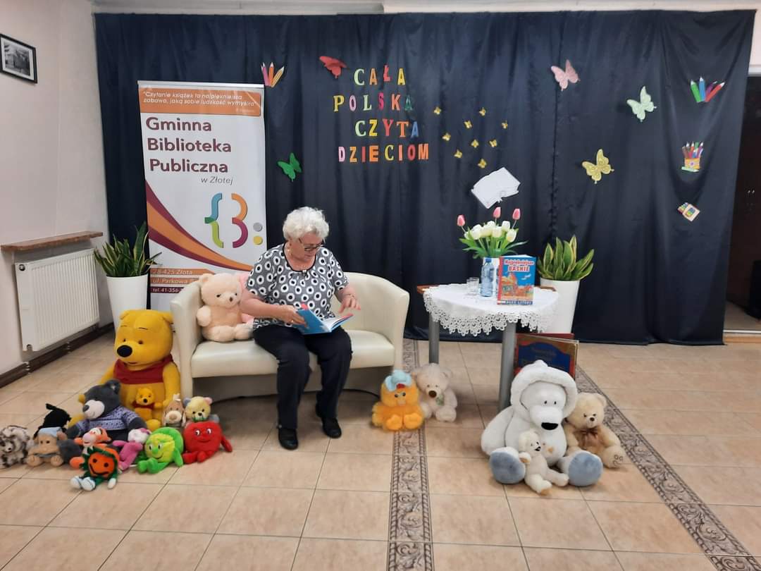 Z Inicjatywy Klubów Senior+ odbyło się spotkanie pt. #SeniorzyDzieciom, wpisujące się w celebrację XXIII Ogólnopolskiego Tygodnia Czytania Dzieciom. W Gminnej Bibliotece Publicznej w Złotej zgromadzili się uczestnicy Klubów Senior+ ze Złotej, Chrobrza i Pełczysk oraz uczniowie klasy III Zespołu Placówek Oświatowych w Złotej, by razem czerpać radość z magicznego świata literatury.