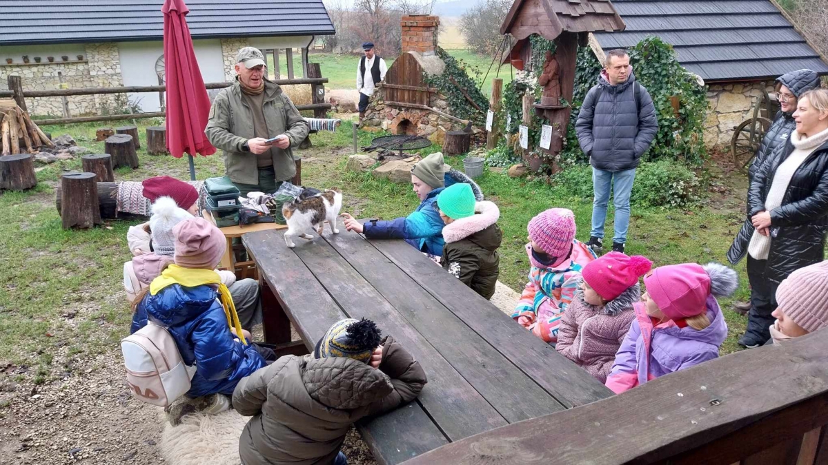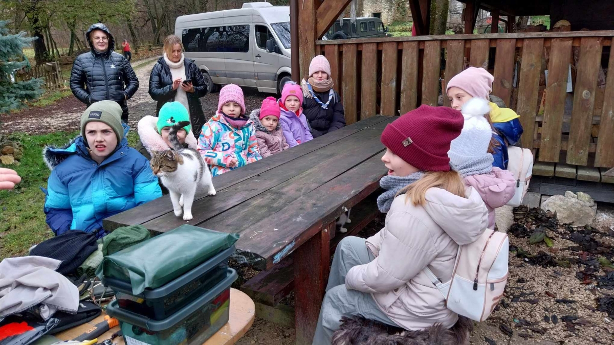 Miły gospodarz przygotował słodki poczęstunek w postaci drożdżówek i słodkich pampuchów. Dzieci poznały opowieści o życiu dawnych mieszkańców wsi i ich przygotowań do świąt. Zwiedziły Ostoję i sad, następnie odbyły się warsztaty z survivalu - jak przetrwać w lesie, każdy z uczestników miał możliwość samodzielnego rozpalenia ogniska bez zapałek, tylko za pomocą krzesiwa.