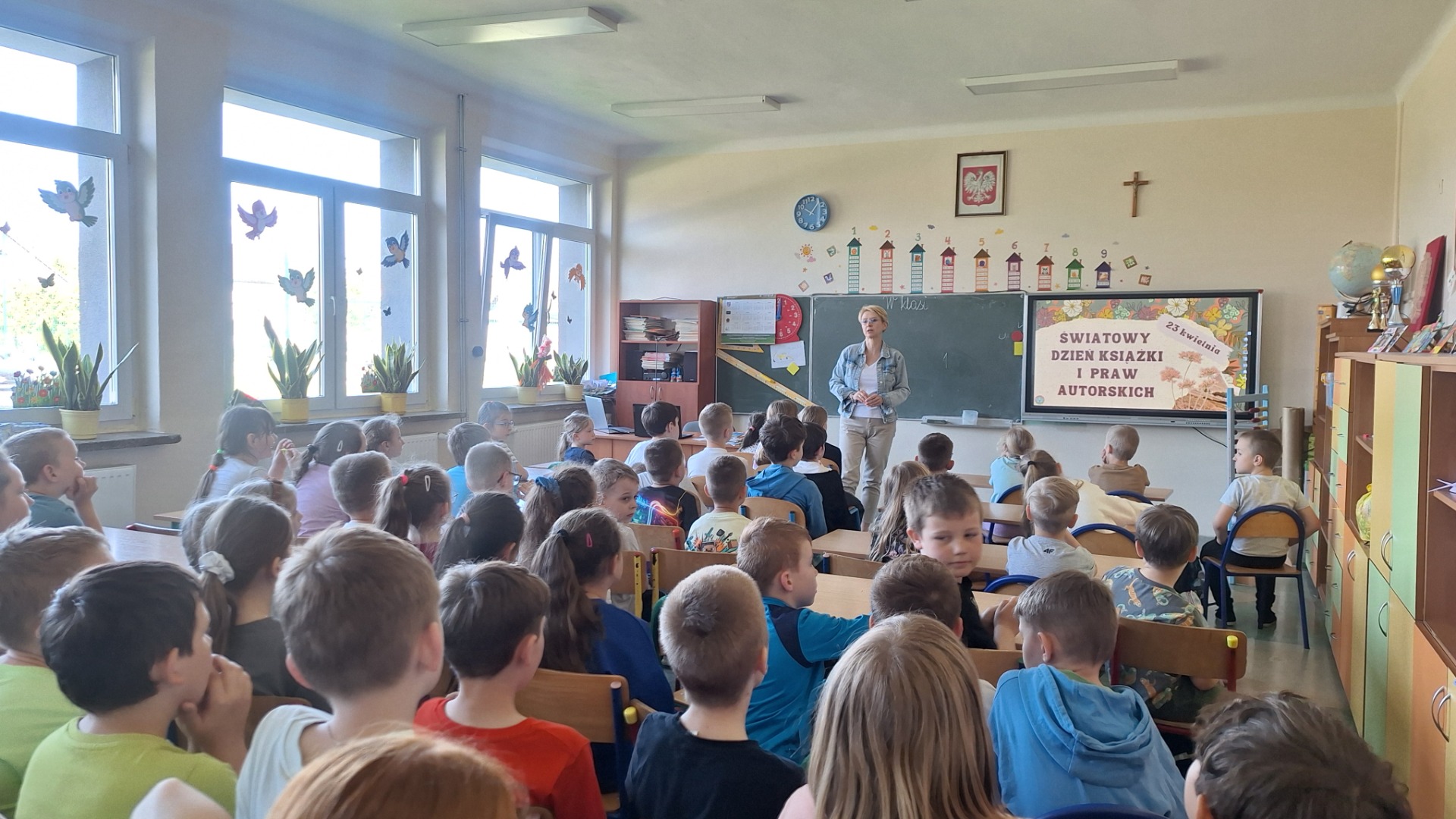 Obchodzone na całym świecie – 23 kwietnia - święto książki wywodzi się z Katalonii, a po raz pierwszy zorganizowano je w 1926 roku. To ważna data w historii literatury światowej: data śmierci Cervantesa, urodzin i śmierci Szekspira, a także śmierci Inki Garcilasa de la Vegi - hiszpańskiego poety. Z tego właśnie powodu zaprosiłam uczniów klas I-VIII do udziału w prezentacji na temat książek i przestrzegania praw autorskich.