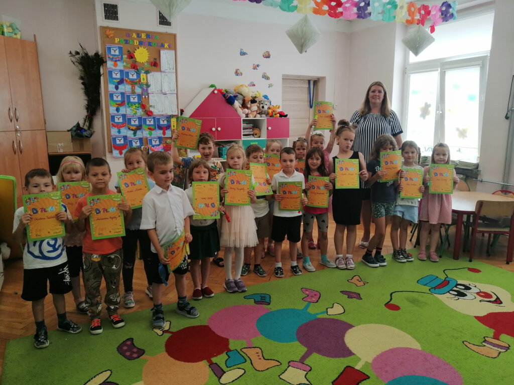 Wszystkie dzieci otrzymały dyplomy z rąk pani dyrektor Marioli Warzechy oraz nagrody – niespodzianki od wychowawczyń pani Anny Kowalskiej, Katarzyny Marzec i Renaty Magdziarz.