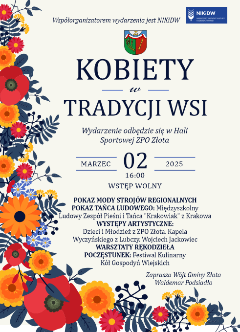 Zapraszamy wszystkie Panie z terenu Gminy Złota na wyjątkowe wydarzenie - "Kobiety w Tradycji Wsi".