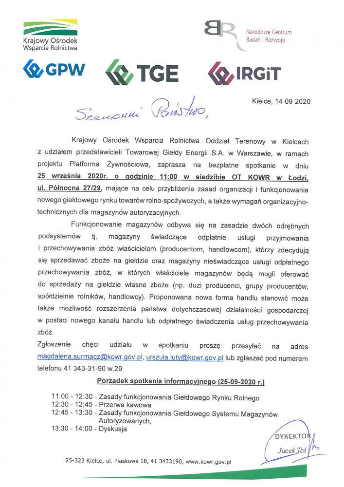 Zaproszenie na bezpłatne spotkanie dot. Platformy Żywnościowej.